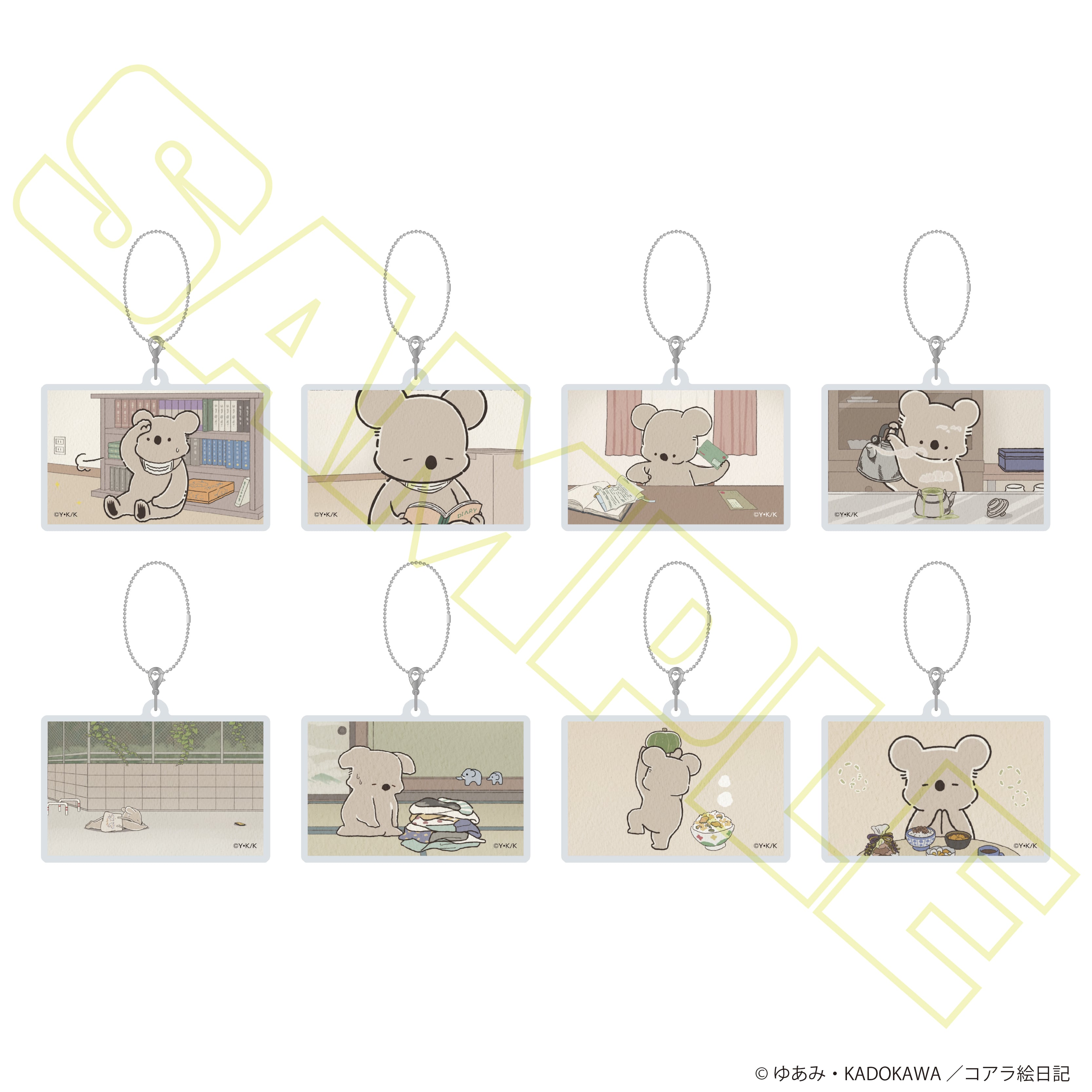 「コアラ絵日記」の印象的なワンシーンを切り取った、シーンカットアクリルキーホルダーがトレーディングで登場。持ち歩くだけで日常のひとコマを楽しめるデザインで、バッグやポーチのアクセントにもぴったり。どのシーンが届くか開ける楽しさがあり、集めて並べると作品世界がより広がるコレクション性の高いアイテムです。