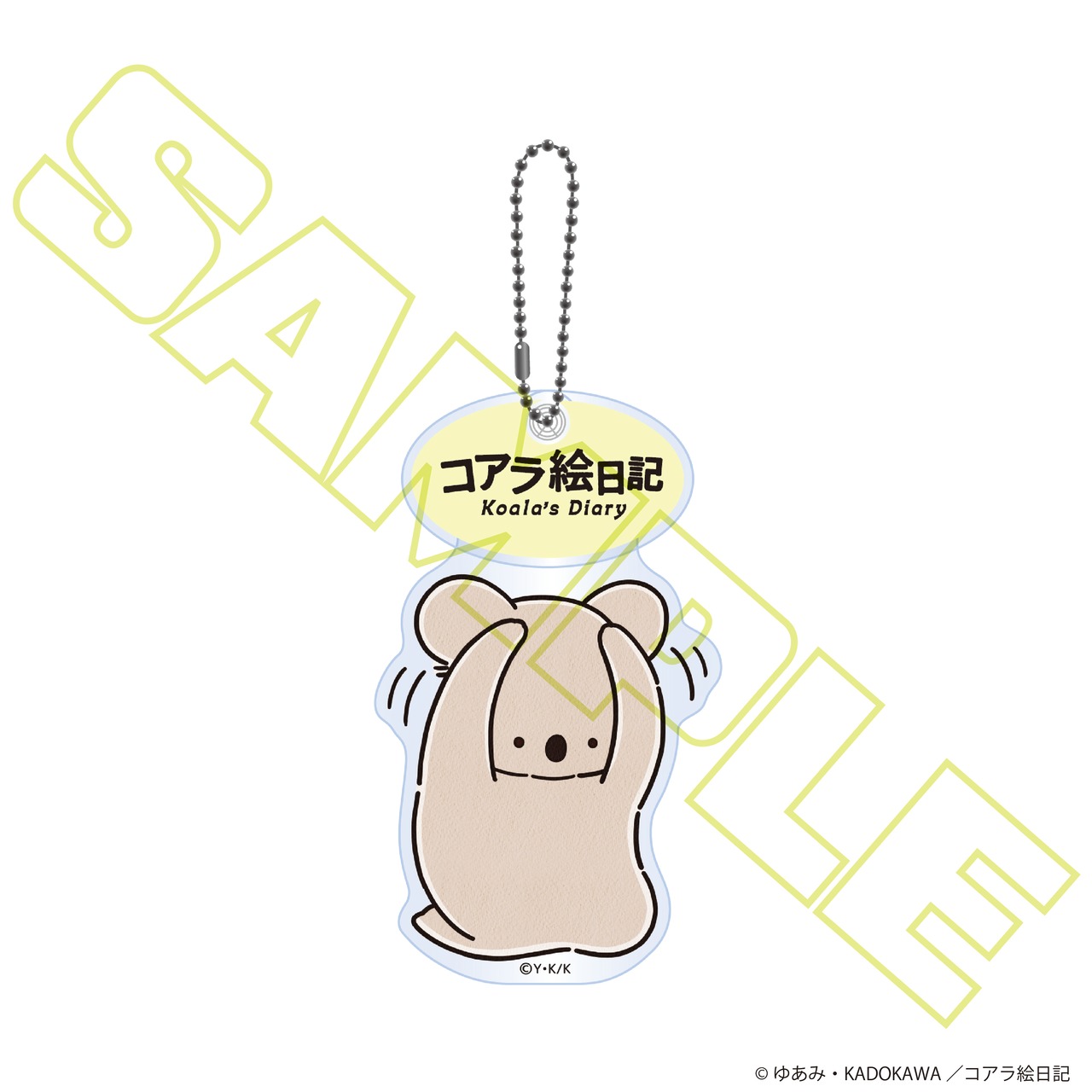 「コアラ絵日記」のキャラクターがゆらゆら揺れるアクリルキーホルダー。バッグやポーチに付けると、歩くたびに軽やかに揺れてほっこり癒されます。作品ロゴ入りプレートとの二層構造で存在感もあり、持ち歩くだけで物語の空気を感じられるデザイン。コレクションとしてもおすすめのアイテムです。
